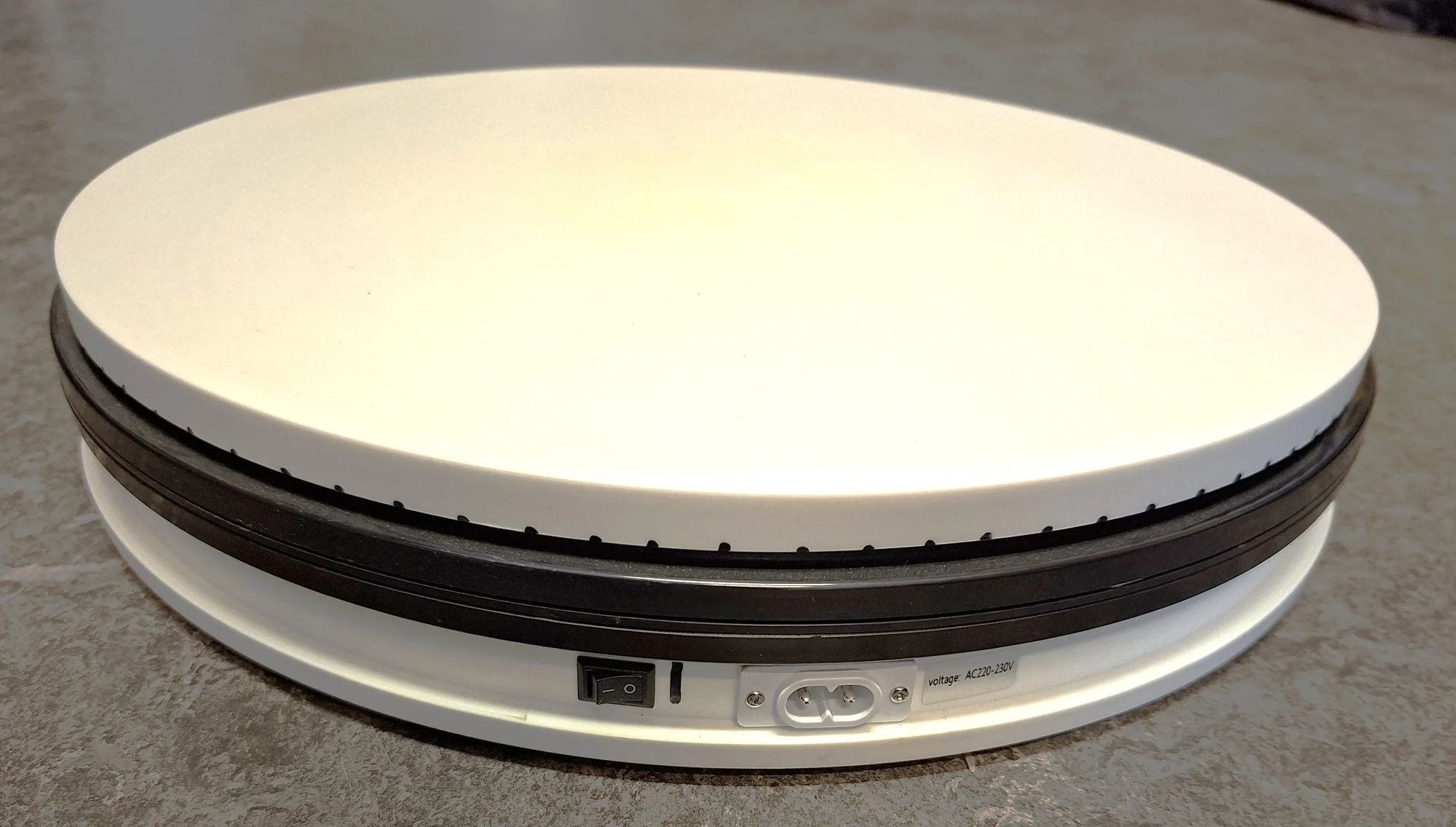 Dieser Mini-Drehteller eignet sich ideal als Produkttisch für 360-Grad-Fotos. Der Drehteller bewältigt in 90 Sekunden eine Umdrehung und eignet sich perfekt für die Präsentation von Produkten bei einer Ausstellung.